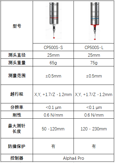 CP500S扫描测头型号及配置